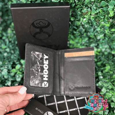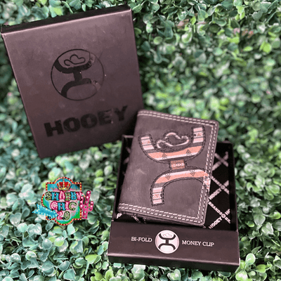 This Hooey bifold money clip wallet features features a laser cut hands-up Hooey Logo, detailed with Lakota aztec print inlay exterior and black interior, and includes our custom hooey brands woven logo liner