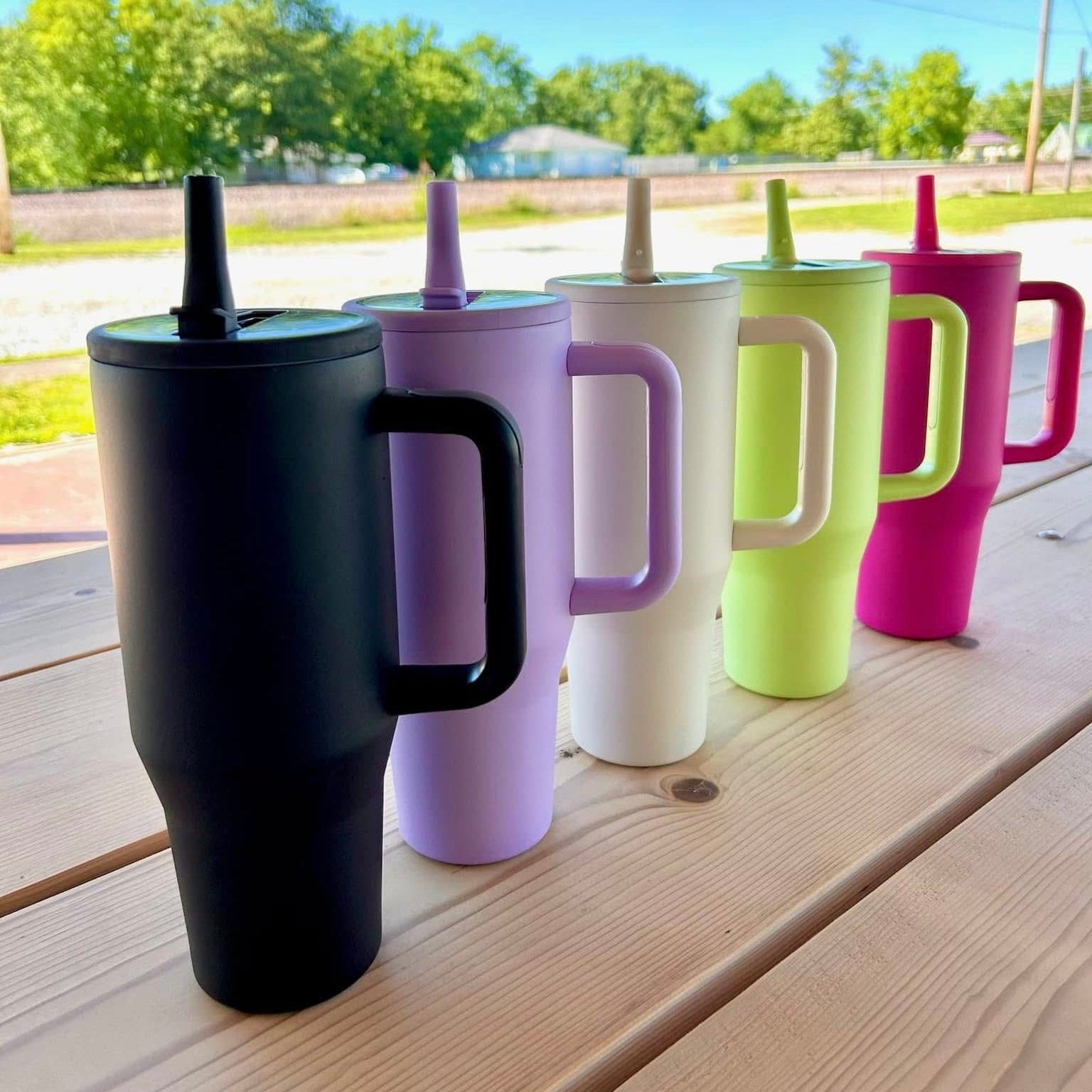 Introducing the HydroBABE Tumbler 40 Oz - your new stylish and functional companion. The spill-free and leak-proof lid, flip top straw, and easy-carry handle make it perfect for on-the-go hydration. Plus, it's stainless steel, insulated, and dishwasher safe for your convenience. Stay hydrated in style with HydroBABE.