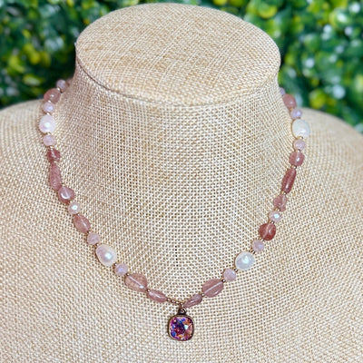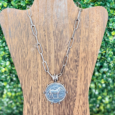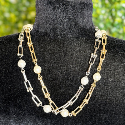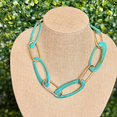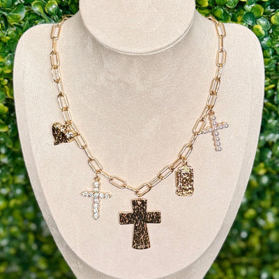 Hammered Goldtone Circle Chain with Large Clear Stone