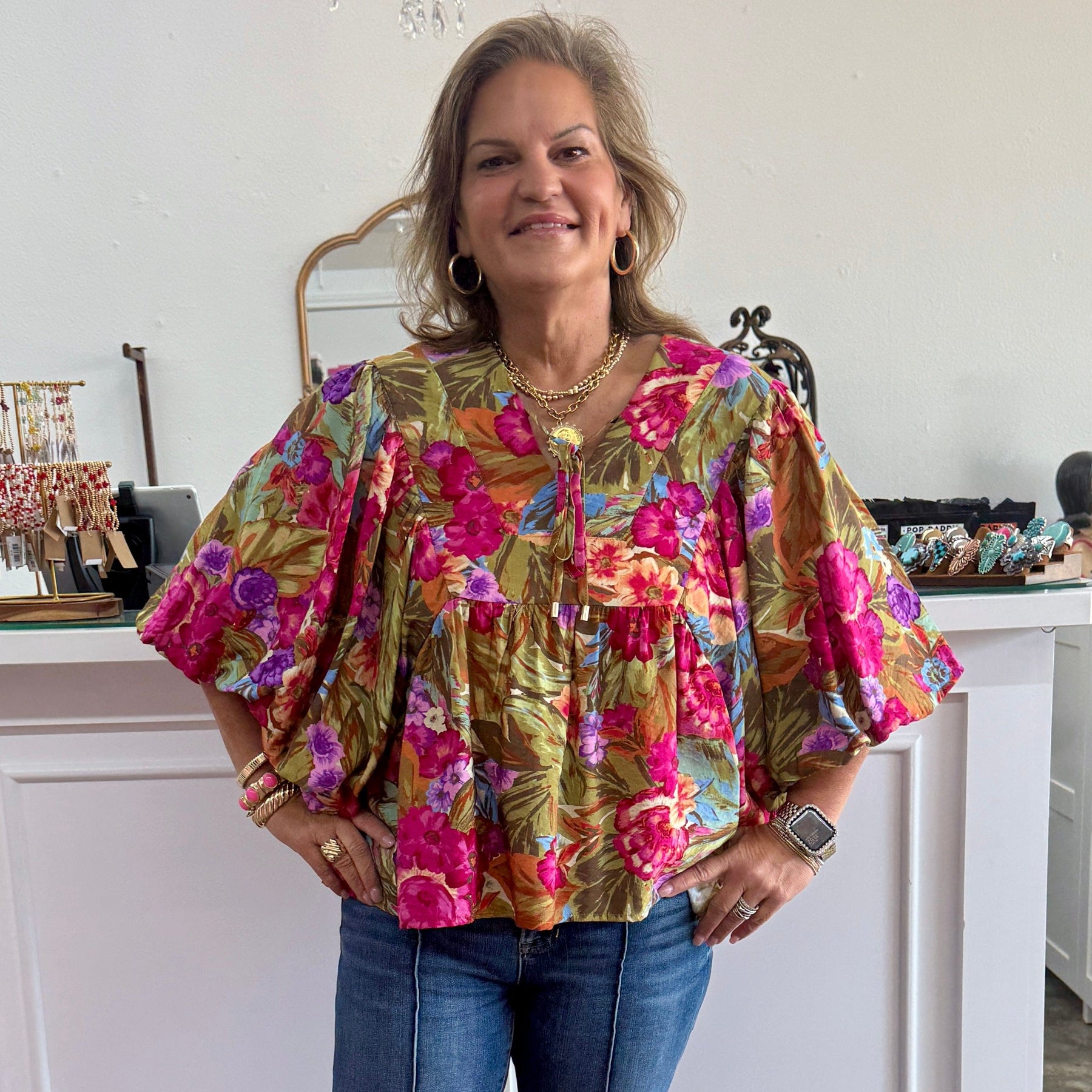 Elevate your wardrobe with the Always The Best Top, featuring a delicate floral print that adds timeless charm. Its wide bubble sleeves create a sophisticated silhouette, while the plunge neckline with a tie detail offers adjustable comfort and a flattering fit. Perfect for both casual outings and dressier occasions, this top combines style and versatility with expert craftsmanship.