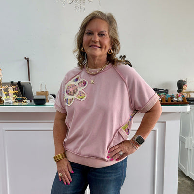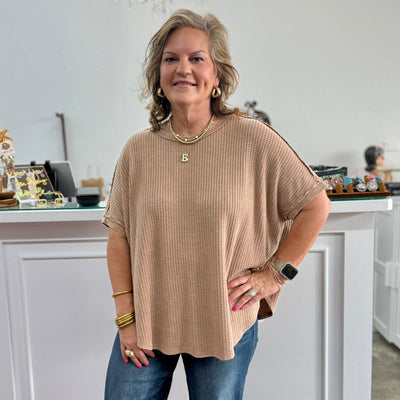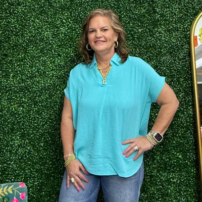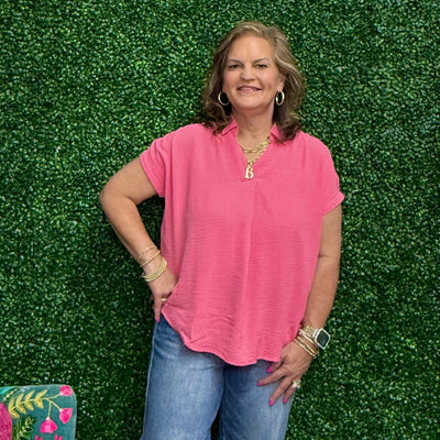Solid Short Sleeve Dolman Top with Plaid Trim - Red