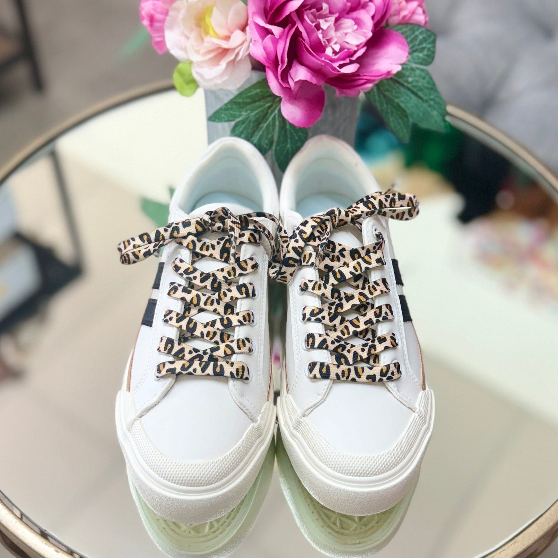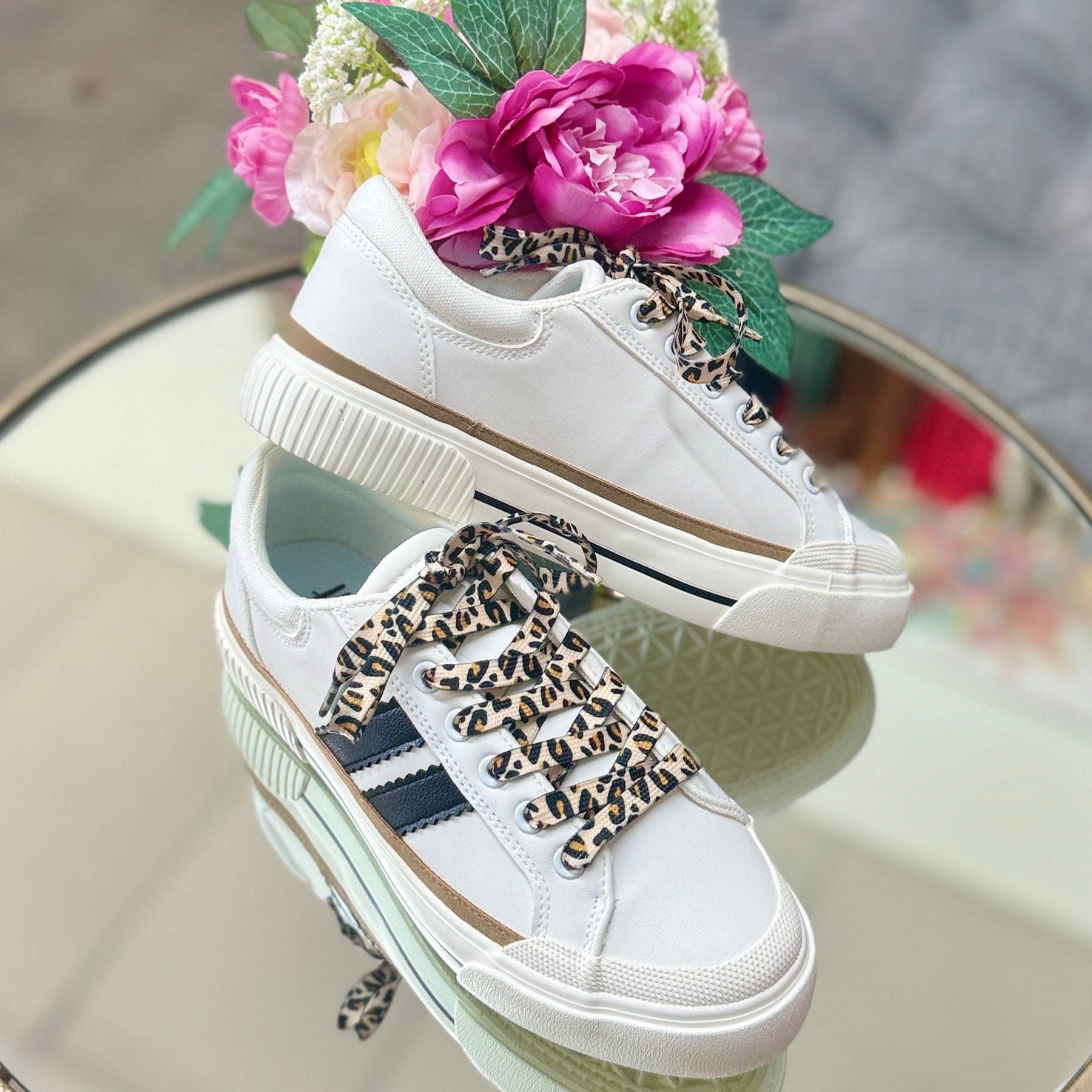 That’s Her Sneaker by Corky’s combines bold style with expert craftsmanship. Featuring distinctive leopard print shoelaces and sleek black stripe detailing, this sneaker offers a unique, fashion-forward look. Designed for those who appreciate quality and standout design, it delivers both comfort and statement-making appeal.