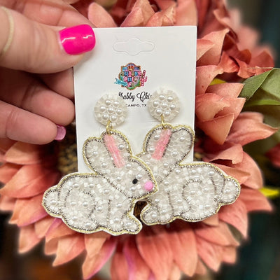 Beaded Pearl Bunny Earrings