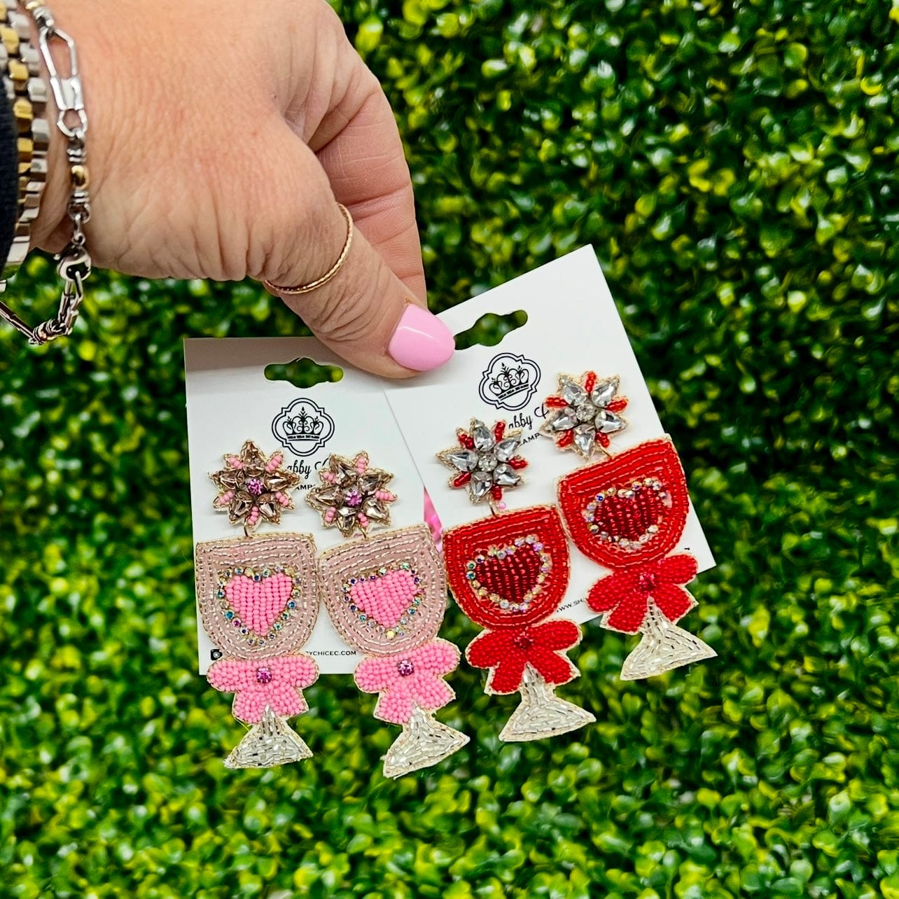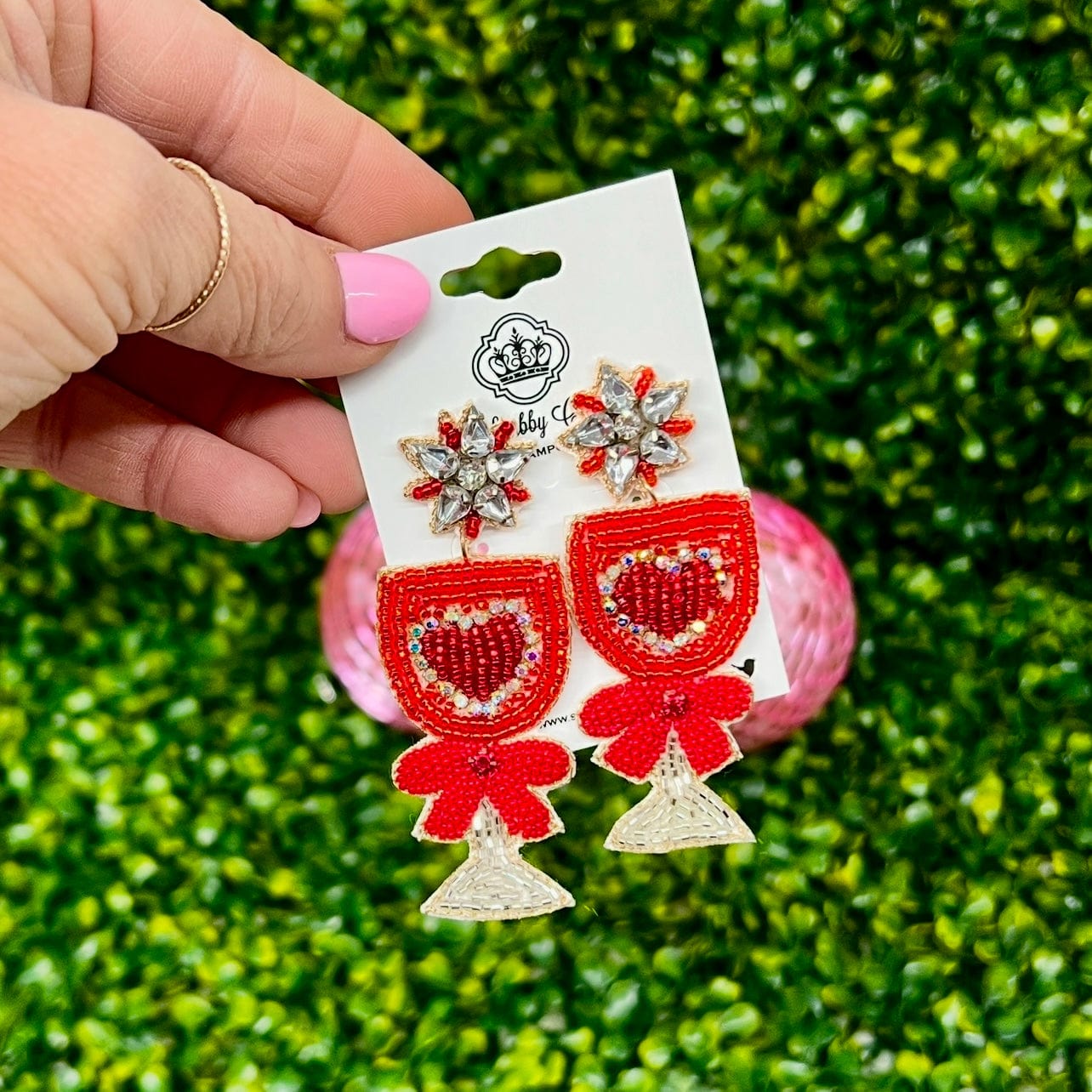Beaded Wine Glass Earrings Shabby Chic Boutique and Tanning Salon Red