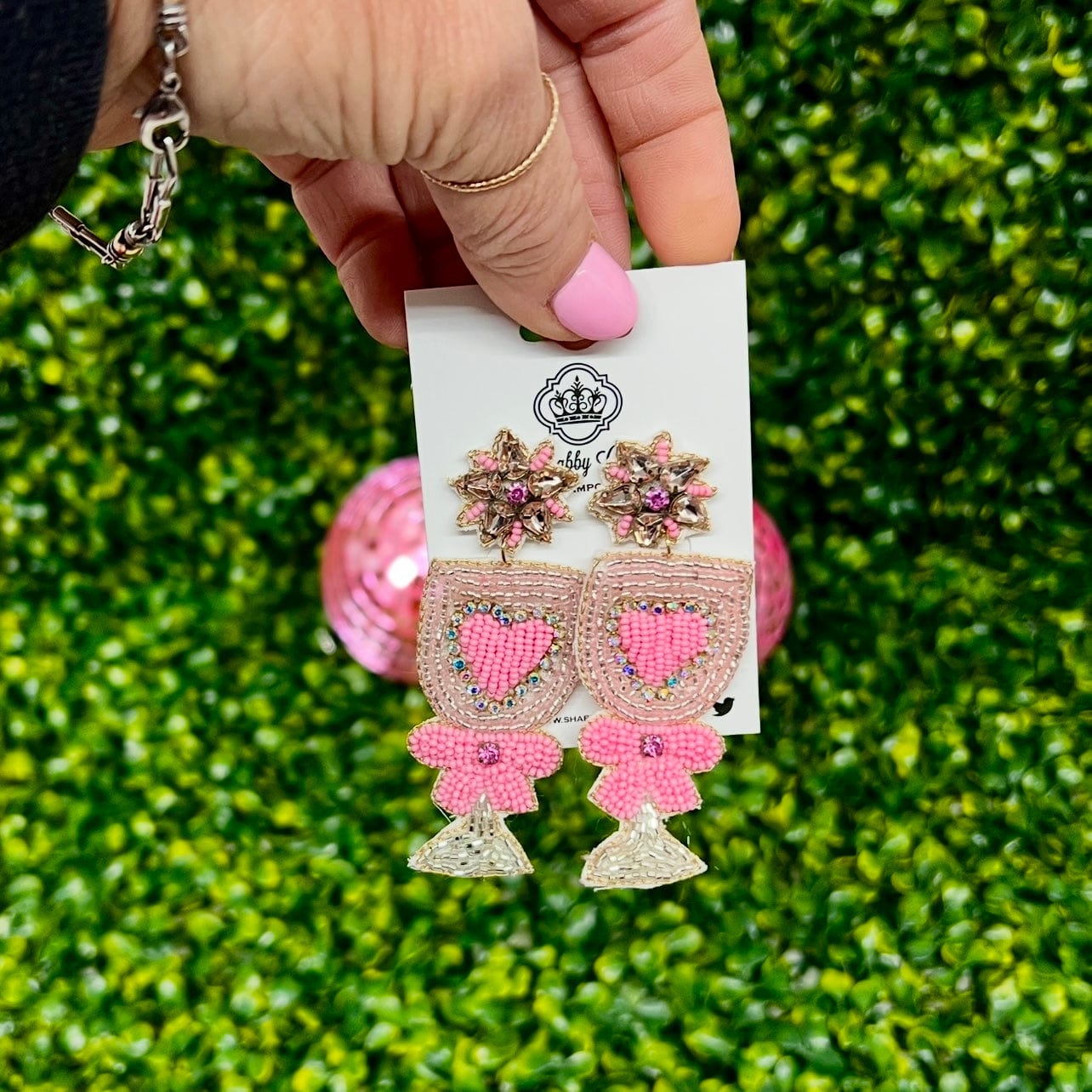 Beaded Wine Glass Earrings Shabby Chic Boutique and Tanning Salon Pink