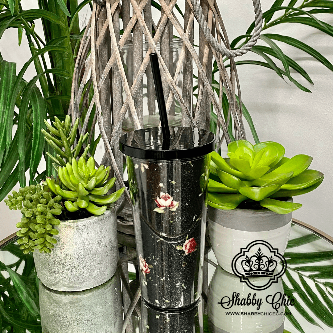 Black Floral Tumbler