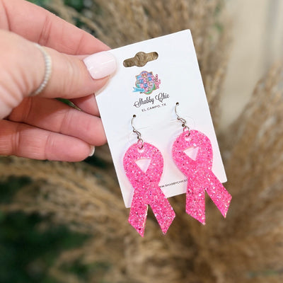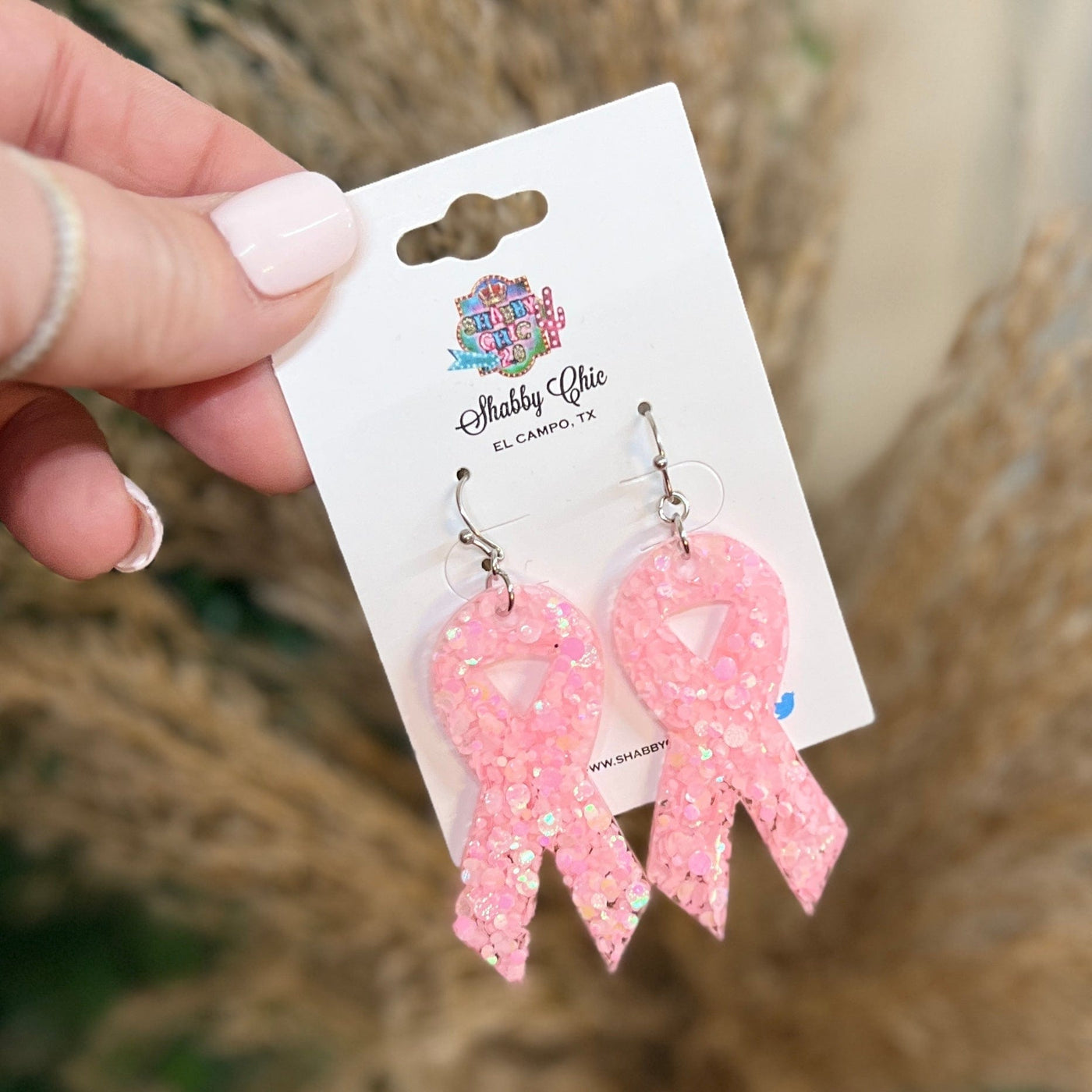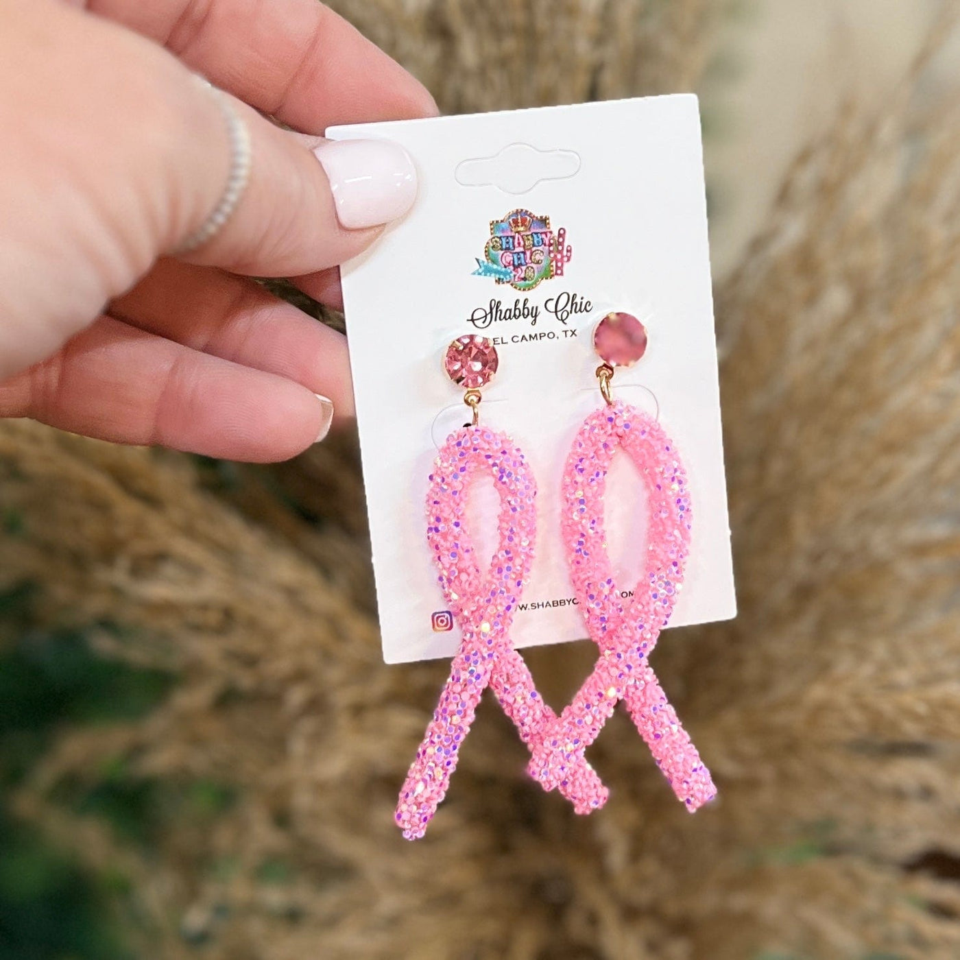 Breast Cancer Awareness Earrings Shabby Chic Boutique and Tanning Salon Glitter Ribbon Earrings