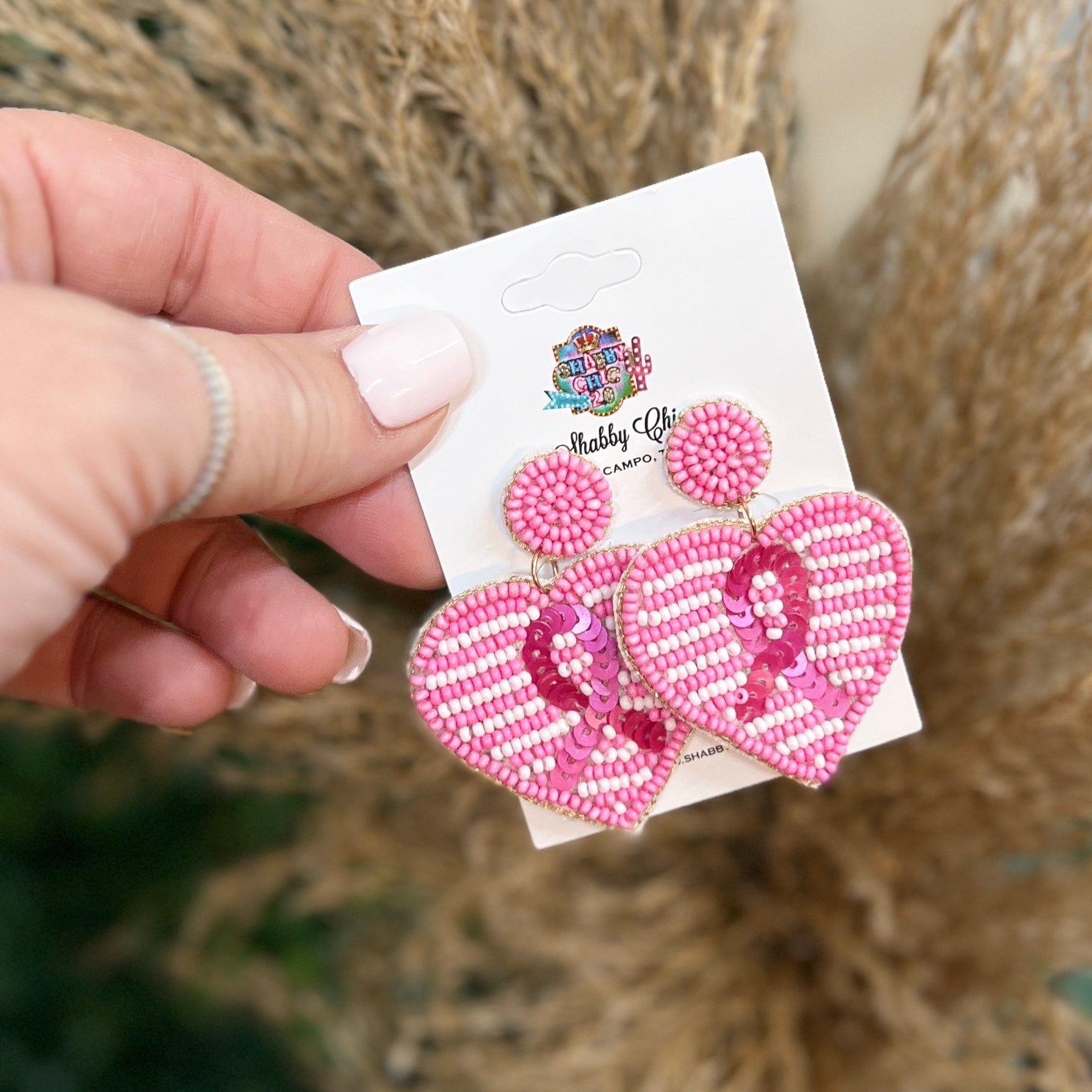 Breast Cancer Awareness Earrings Shabby Chic Boutique and Tanning Salon Pink Heart with RIbbon