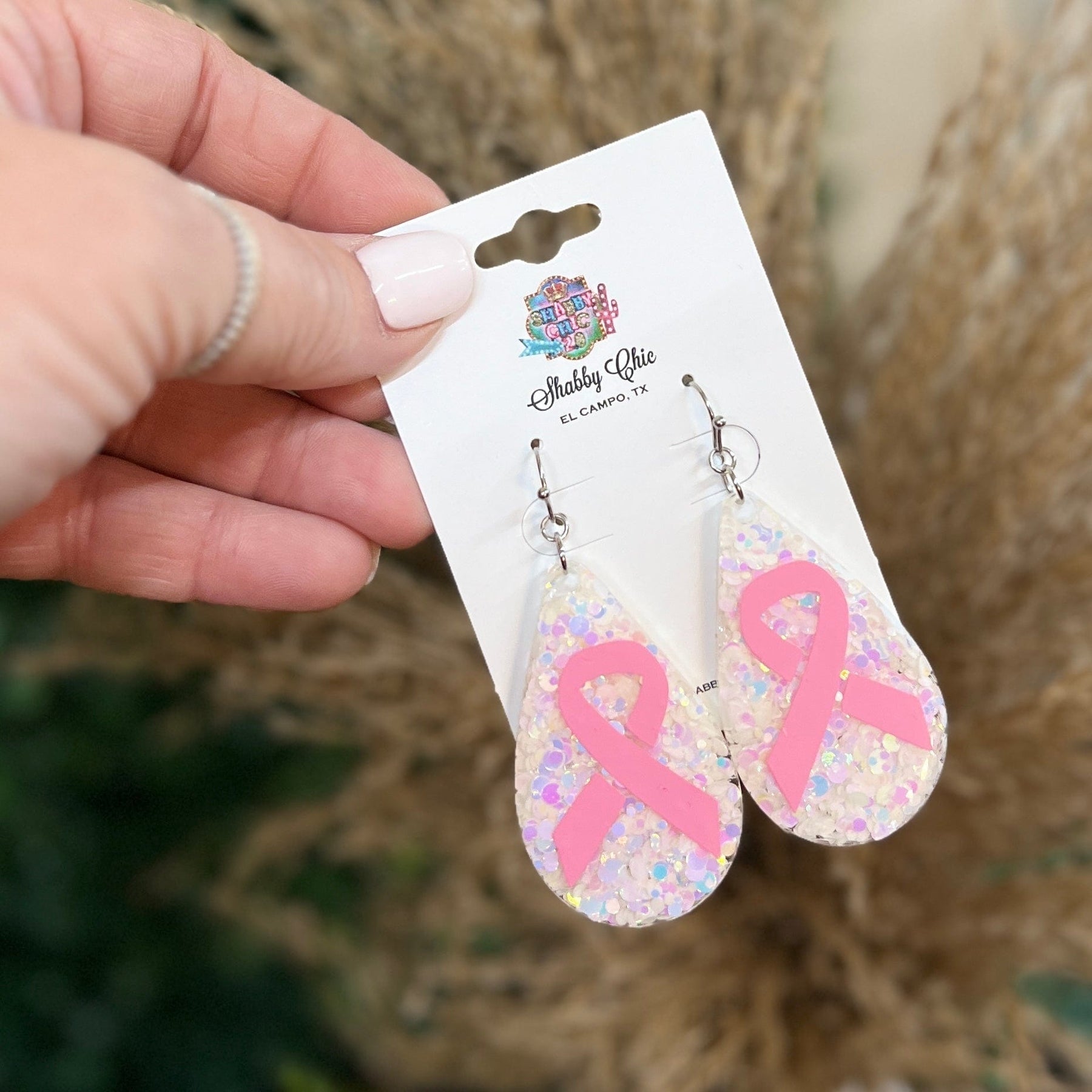 Breast Cancer Awareness Earrings Shabby Chic Boutique and Tanning Salon Light Pink Ribbon