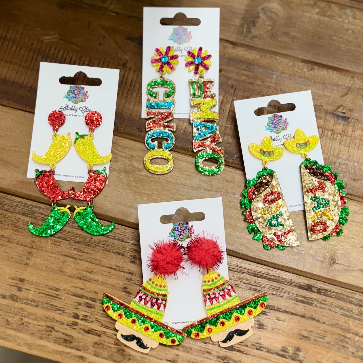 Cinco De Mayo Glitter Earrings Shabby Chic Boutique and Tanning Salon