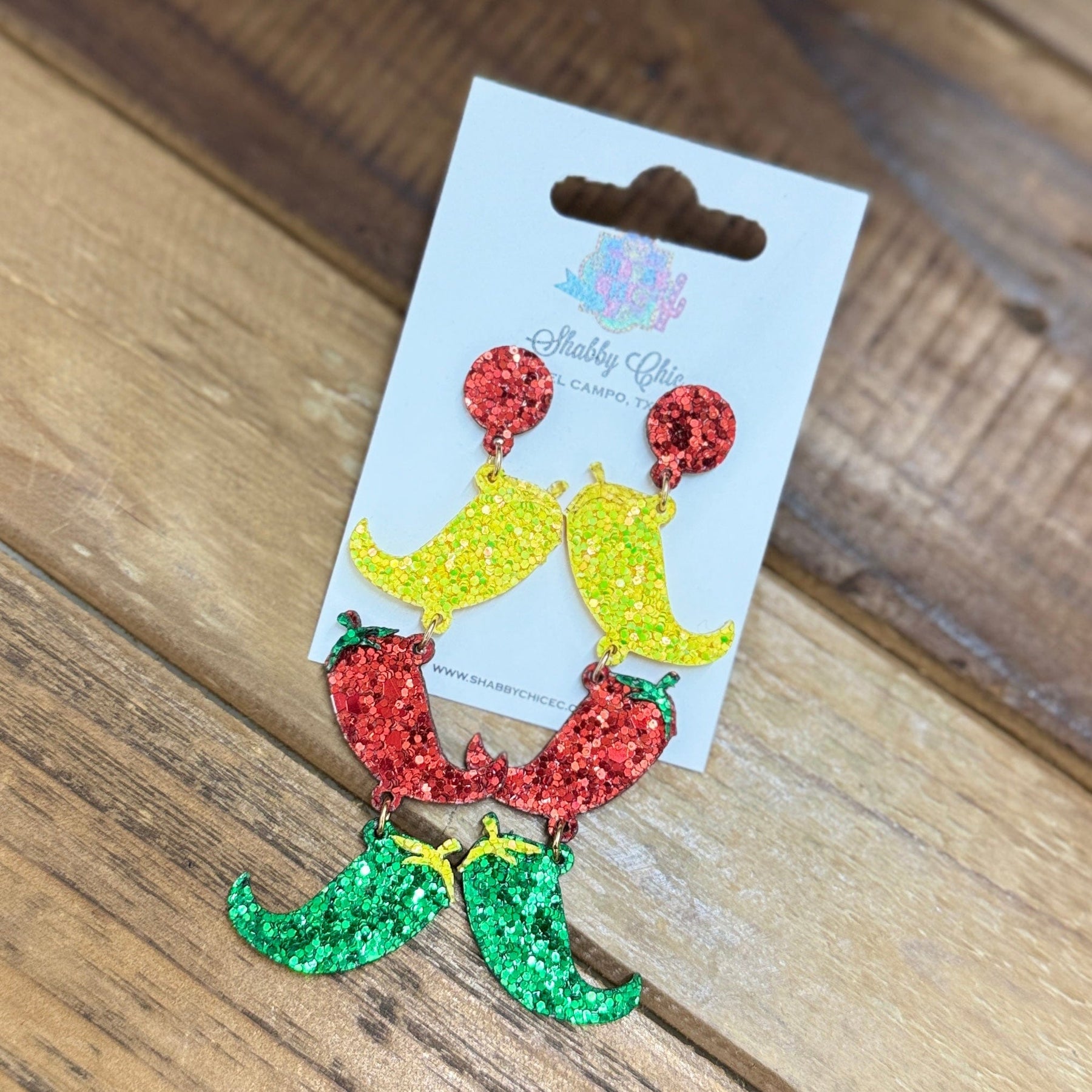 Cinco De Mayo Glitter Earrings Shabby Chic Boutique and Tanning Salon Peppers