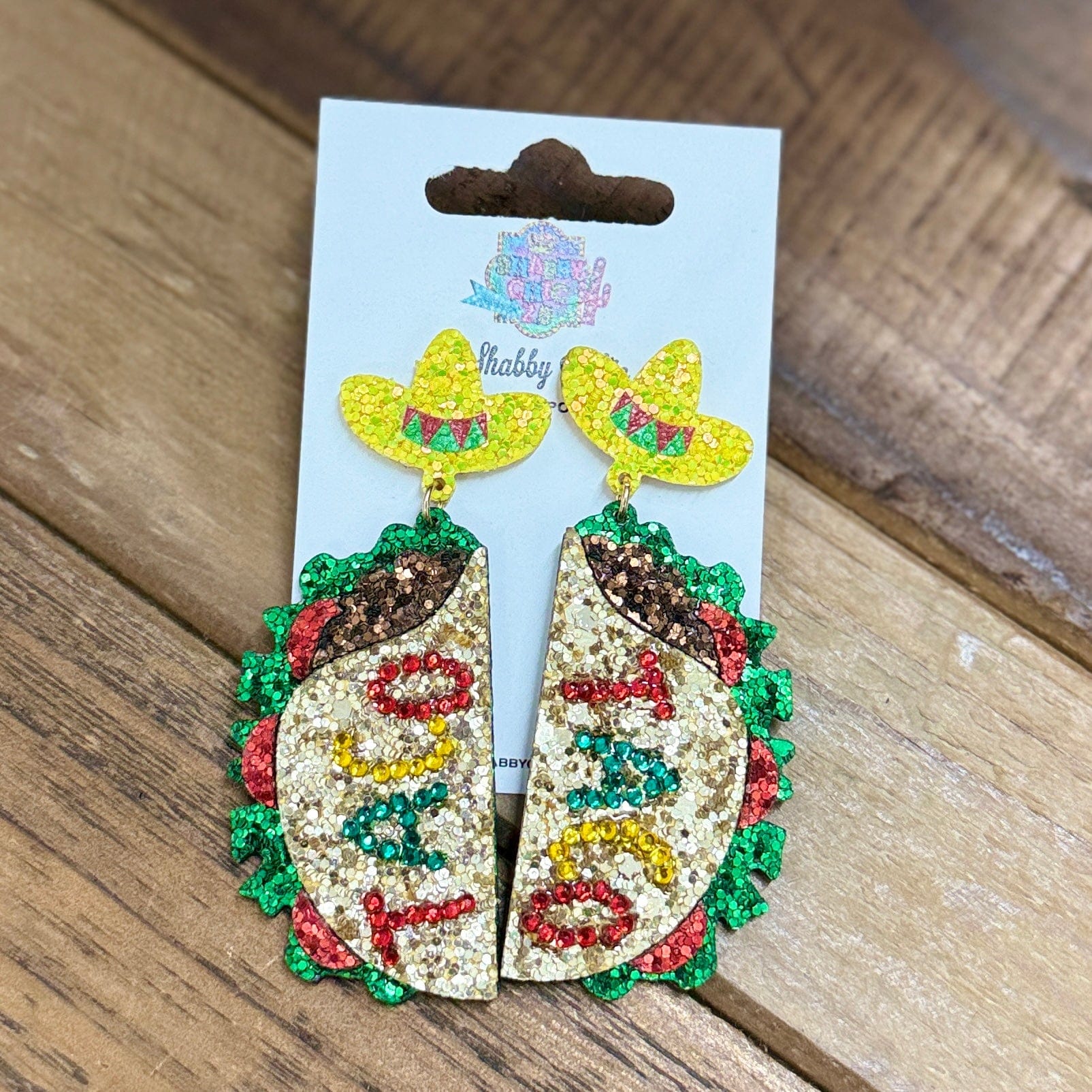 Cinco De Mayo Glitter Earrings Shabby Chic Boutique and Tanning Salon Taco