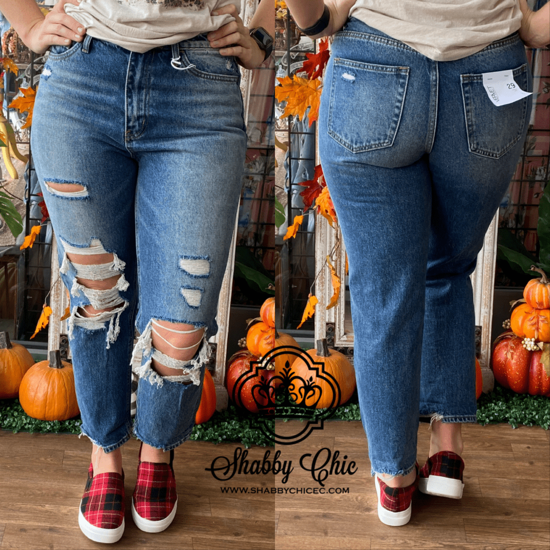Emma Medium Wash Distressed Boyfriend Cut Jeans