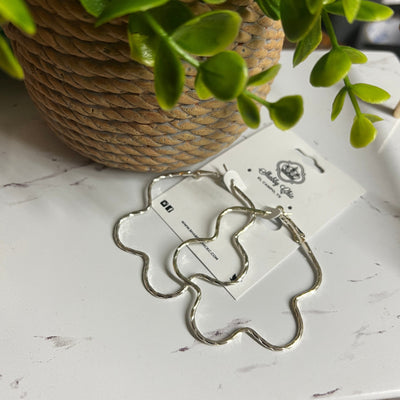 Flower Hoop Earrings - Silver