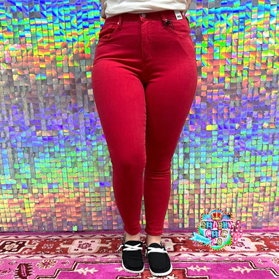 The Judy Blue Red Jeans are a stylish and comfortable wardrobe staple. Cut with a high waist, slim fit, and tummy control, this non-distressed style allows for maximum versatility. Crafted from Judy Blue quality fabric, these jeans are sure to be a classic addition to your wardrobe.