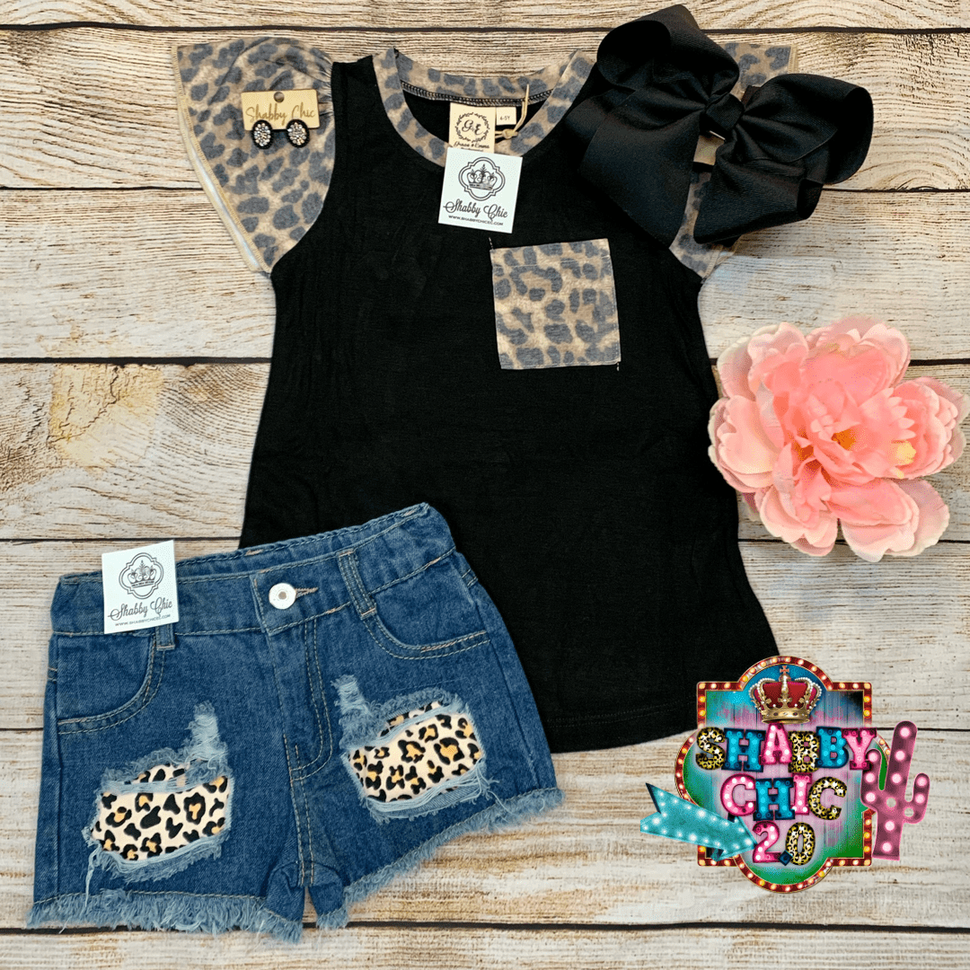 Cute little girls top with leopard on sleeves and leopard pocket.