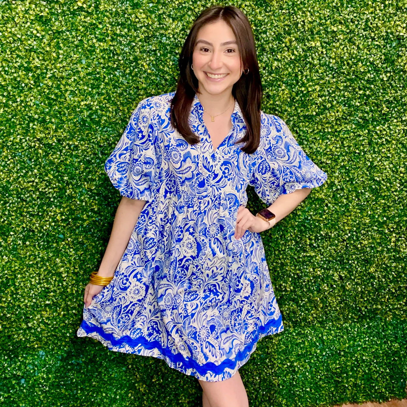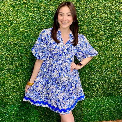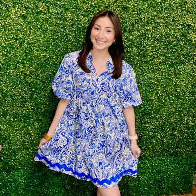 Upgrade your wardrobe with our Make It Better Dress. Featuring a unique two toned design, this dress is complete with elegant balloon sleeves and zig zag ric rac trim. Experience a stylish and sophisticated look with this versatile dress.
