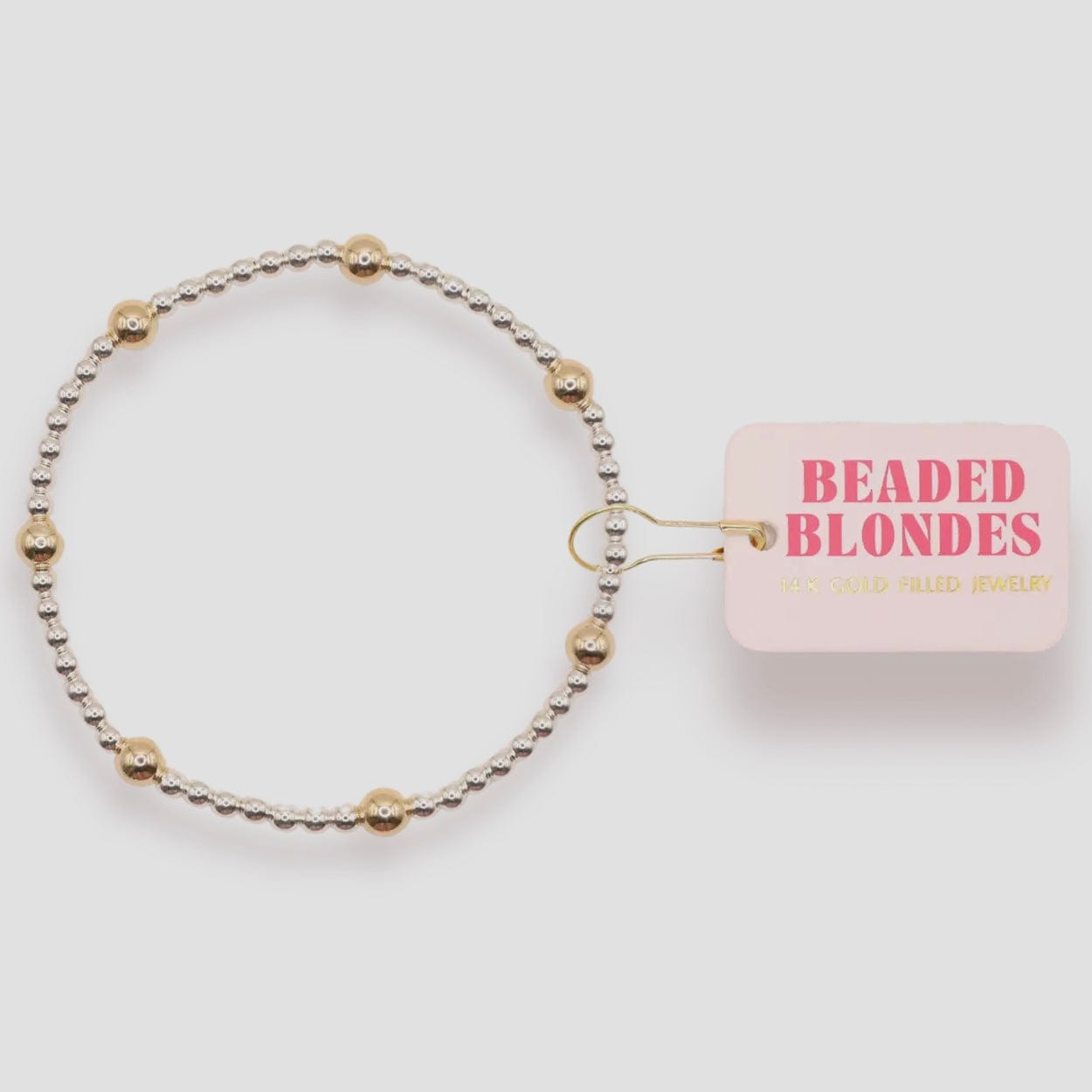 Beaded Blondes silver stackable beaded bracelets with 3mm + 5mm pattern. Made from sterling silver and 14 k gold filled beads so perfect for everyday wear! Sweat proof, water proof and tarnish free! Handstrung with love in College Station, Texas.