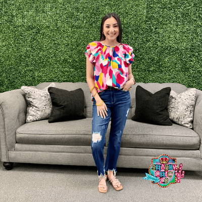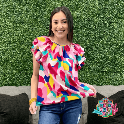 This unique, fashion-forward top is sure to make a statement. The Pieces from the Past Top features a U-neck, back key hole and layered ruffled shoulder. Its lightweight fabric is unlined and non-sheer, boasting a flattering ruched detail and a classic fit.