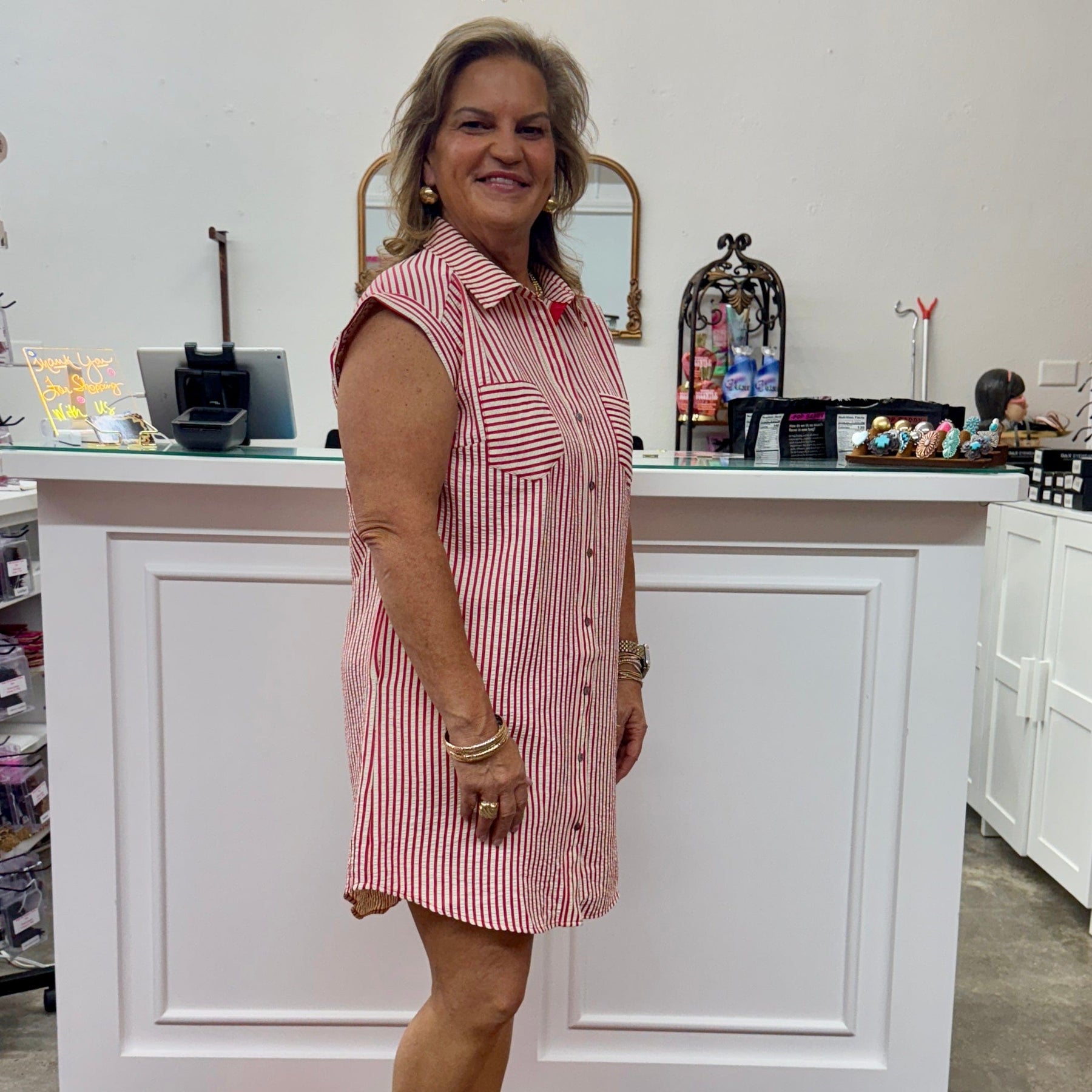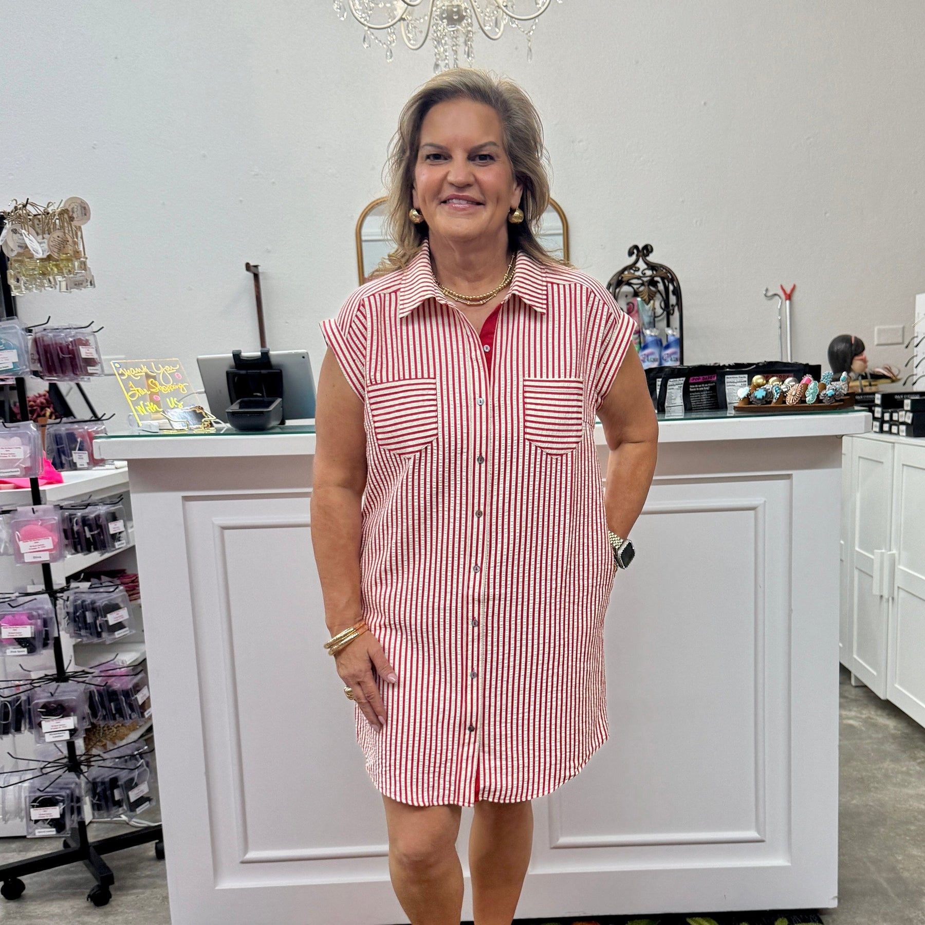 Stripe To It Dress - Red Shabby Chic Boutique and Tanning Salon